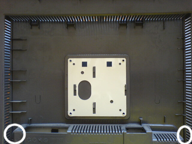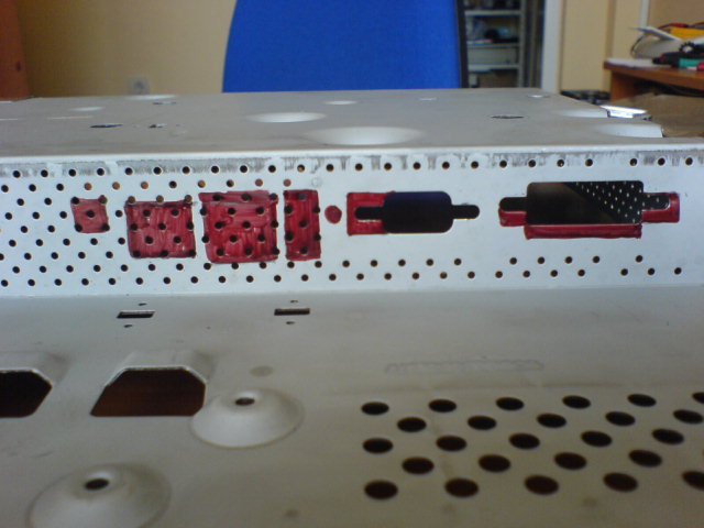 Да се събере- да, но съвсем друго е да може да функционира. Наложи се промяна на изводите от долната част на монитора, за да може да бъде платката напълно функционална. Най-напред отбелязах задния панел, който в случая се превръща в долен панел: