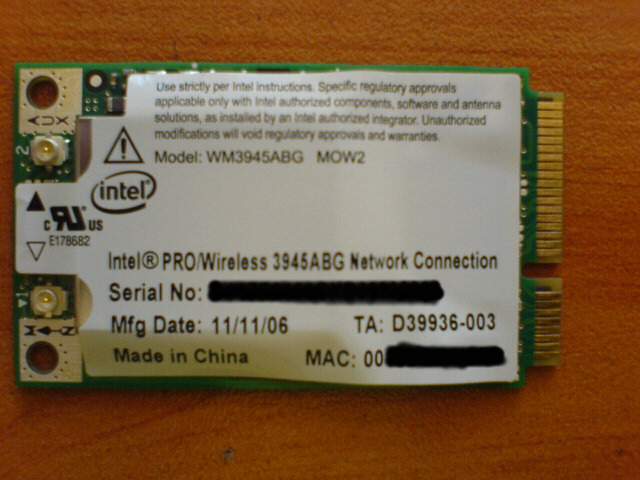 За да съкратя още малко кабелите използвах и безжична мрежова карта на слот mini-PCI: